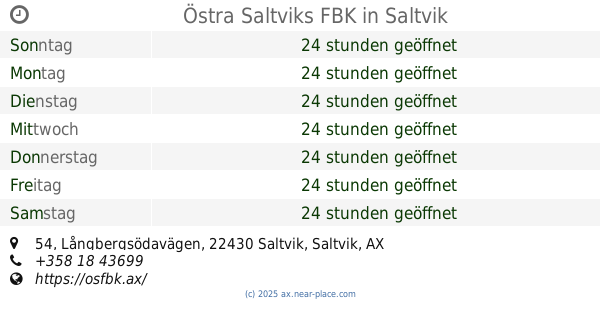 | Samstag | 24 stunden geöffnet | |||||
