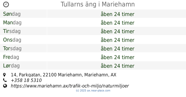 | Søndag | åben 24 timer | |||||